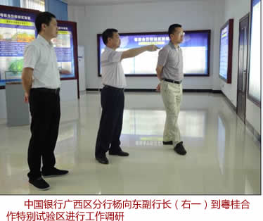 企业获得该行的鼎力支撑后,支撑粤桂合做出格试验区项目(企业)贷款余额达到5.78亿元,至2014年9月末,提高分析办事程度;全力帮推粤桂合做出格试验区扶植成长。